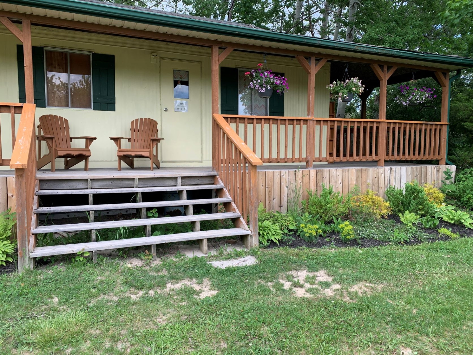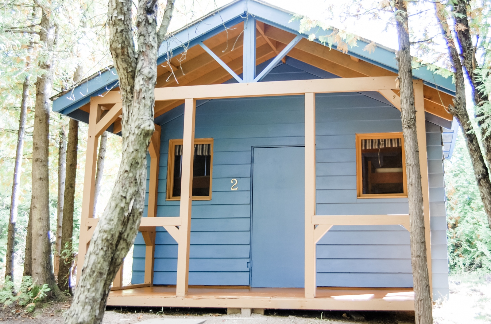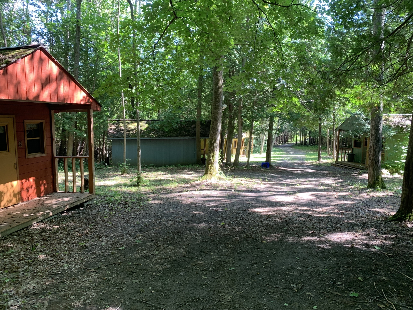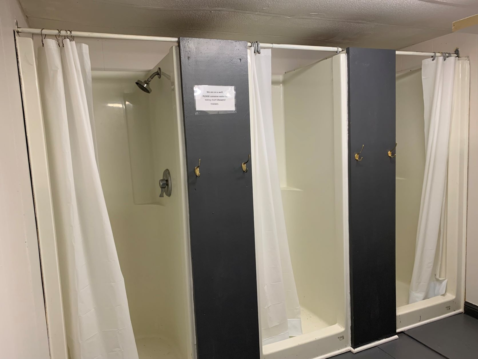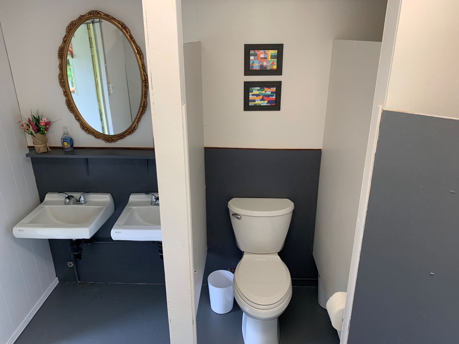 Located next to the main camp building is the Hollows washhouse. There are two separate sections to the building each with its own changing area, stalled toilets, handwashing sinks, with a total of six showers stalls. Each cabin section has 2 to 3 portable restroom units and hand washing stations. Elegance trailer washroom is available for an extra charge.