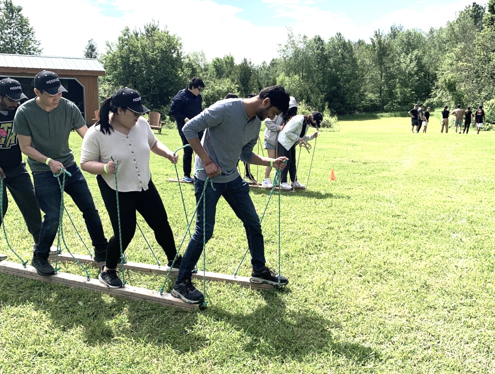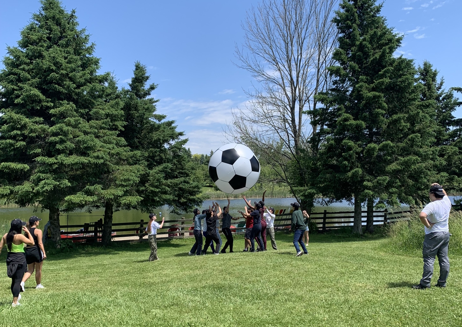 Series of challenges. Teams participate in a variety of fun camp-based activities that require working together as a team with: the Trolley-walker, dizzy sticks & water balloon toss relays, the Tug of War, and giant soccer ball games, are just some of these fun and dynamic activities.
