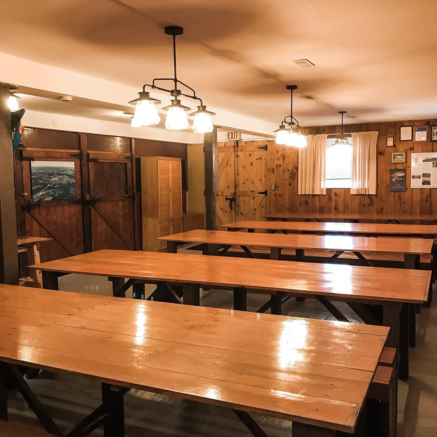 For groups looking for an indoor dining space, the main floor Camp Building is also available.